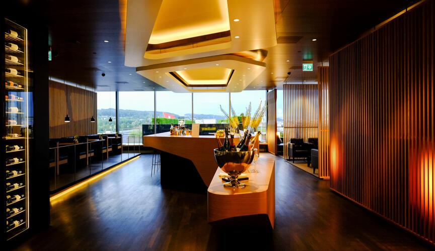 Guests can enjoy fine dining with a fantastic tarmac view from an A La Carte menu that is prepared by world-class chefs or can take advantage of a luxury champagne bar with a terrace that provides great views of the surrounding area.